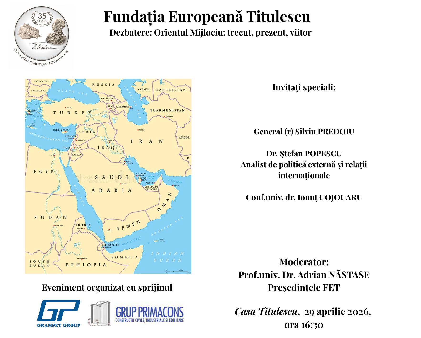 Fundația Europeană Titulescu vă invită miercuri, 15 aprilie 2026, începând cu ora 16.30, la dezbatere și lansarea volumului: Reconfigurarea geopoliticii...