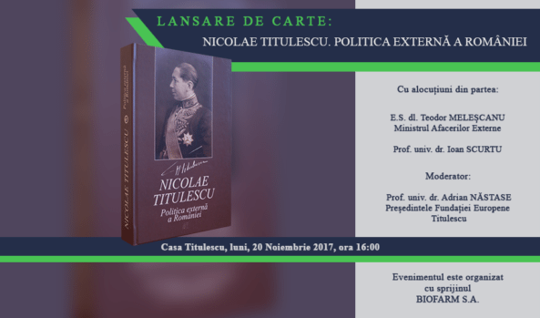Lansare de carte: „NICOLAE TITULESCU. POLITICA EXTERNĂ A ROMÂNIEI”